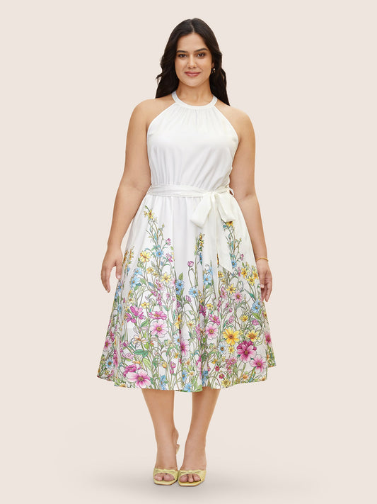 Boho Print Halter Neck Belted Dress