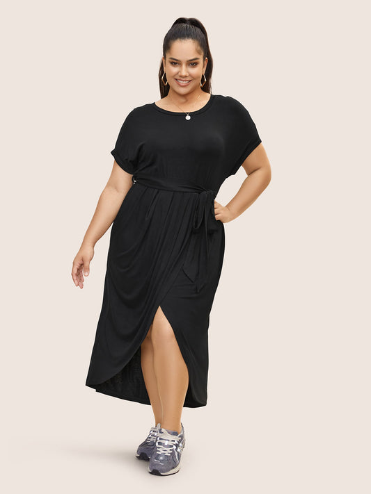 Solid Batwing Sleeve Wrap Hem Maxi Dress
