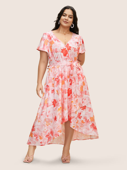 Watercolor Floral Ruffles Asymmetrical Hem Dress