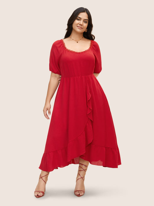 Lace Panel Ruffle Trim Wrap Hem Dress