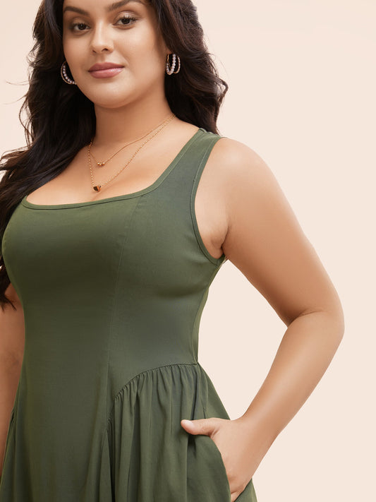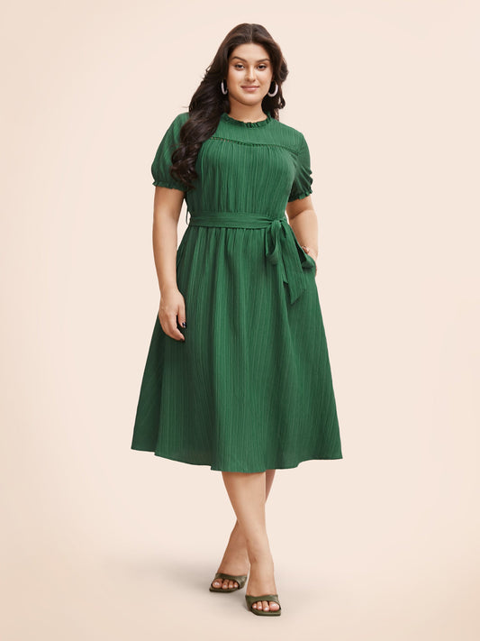 Plain Ruffle Sleeve Woven Ribbon Dress