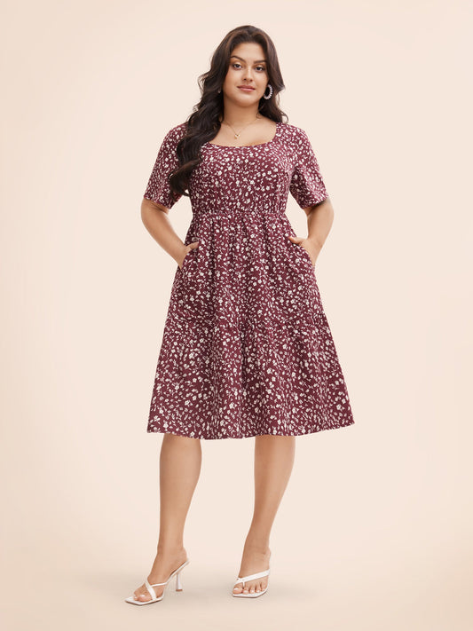 Ditsy Floral U Neck Ruffle Sleeve Dress