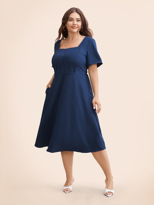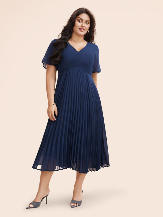 Solid Chiffon Pleated Ruffle Sleeve Dress