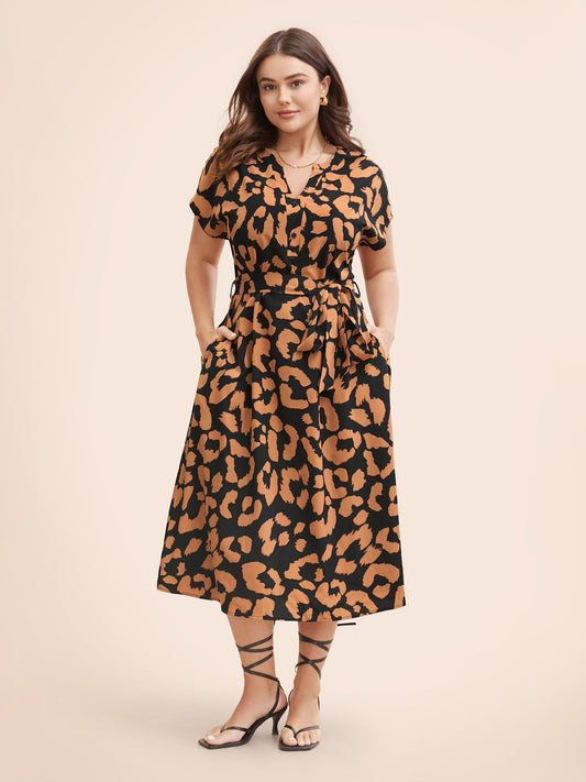 Chiffon Overlap Collar Ruffle Sleeve Dress