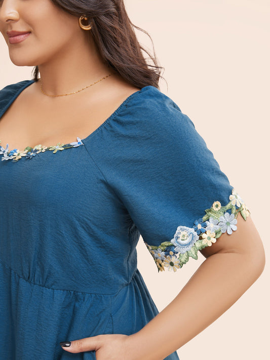V Neck Woven Ribbon Ruffle Layered Hem Dress