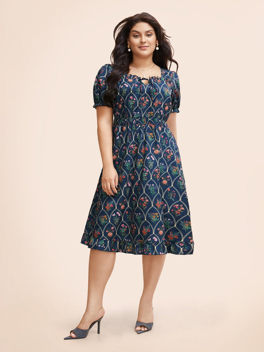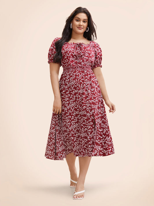 Ditsy Floral Split Hem Puff Sleeve Dress