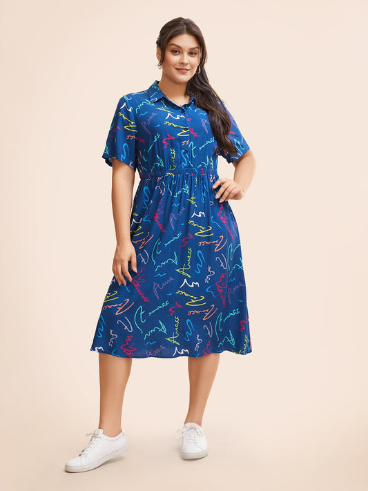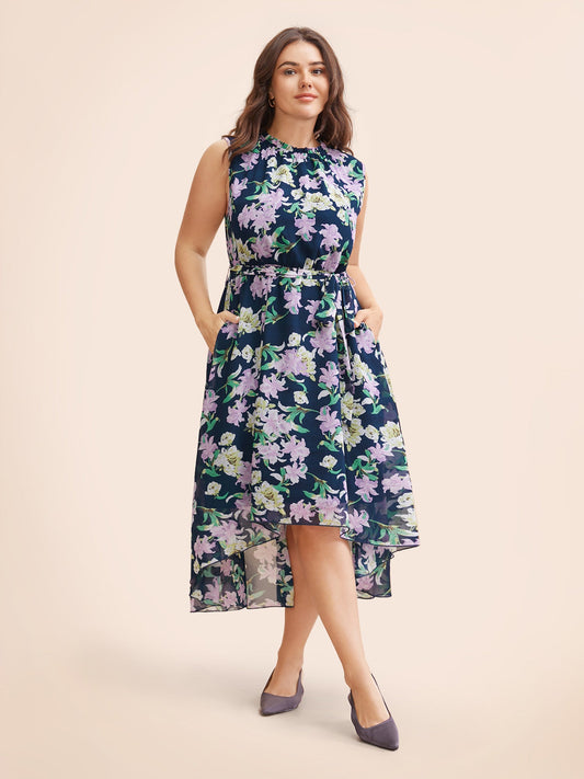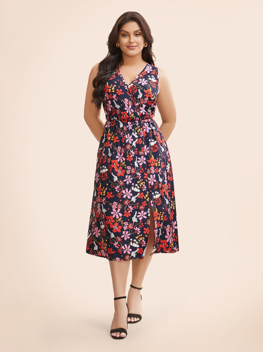 Overlap Collar Silhouette Floral Print Ruffles Dress