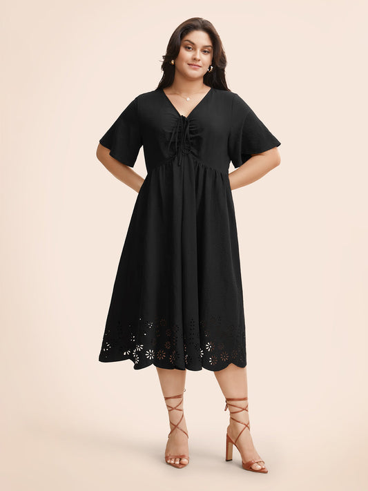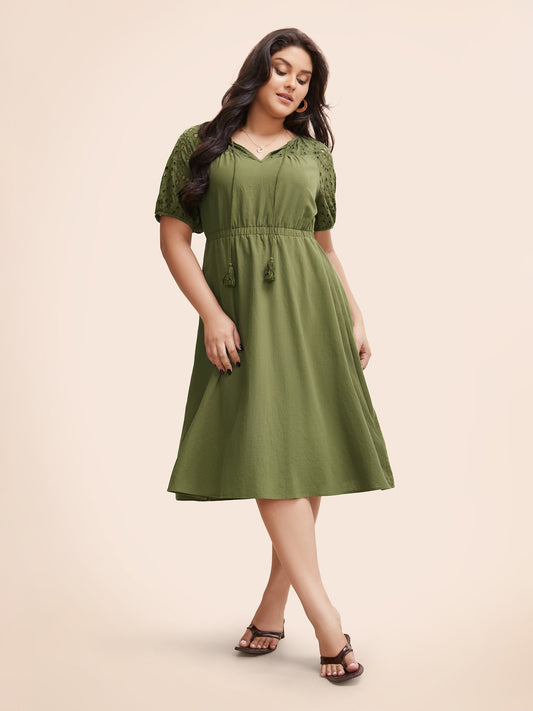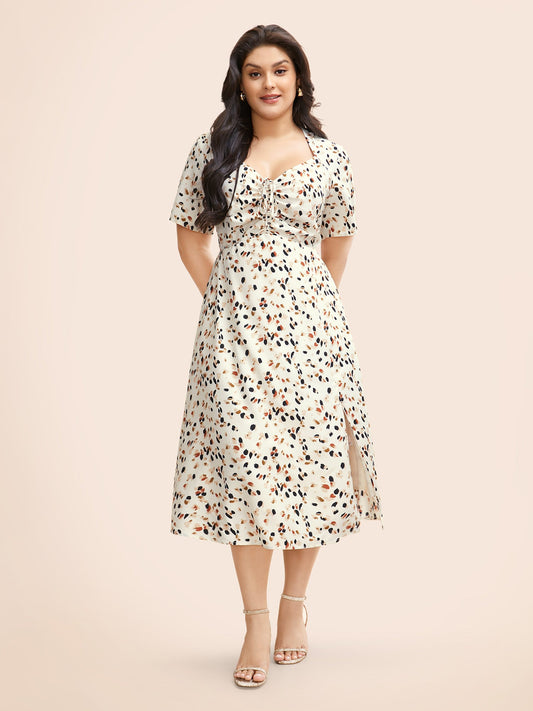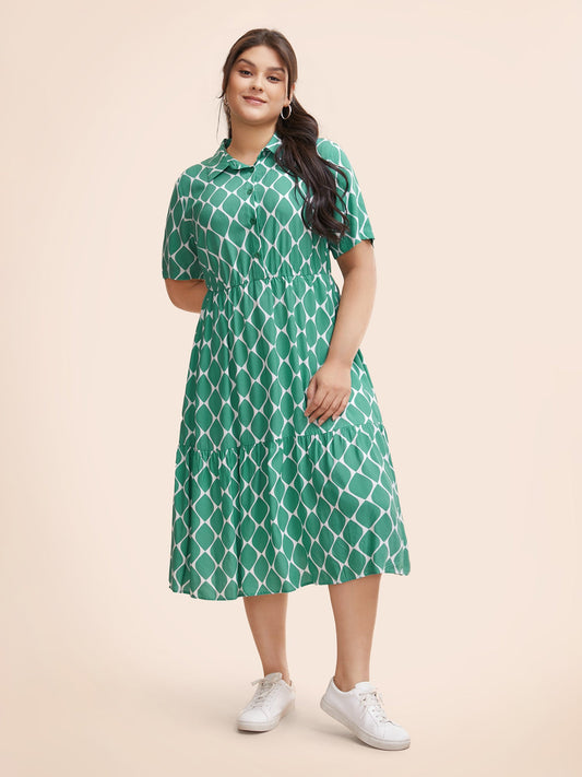 Geometric Tiered Elastic Waist Midi Shirt Dress