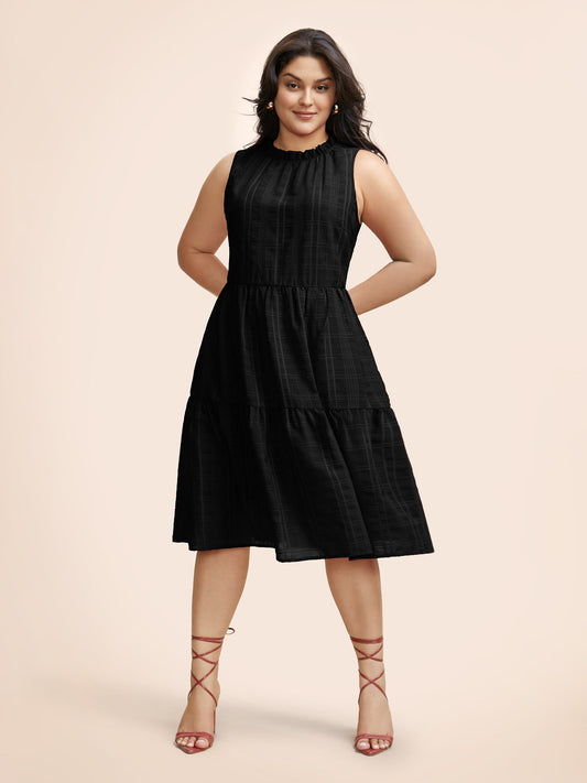 Plaid Stand Collar Frill Trim Sleeveless Dress