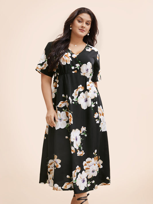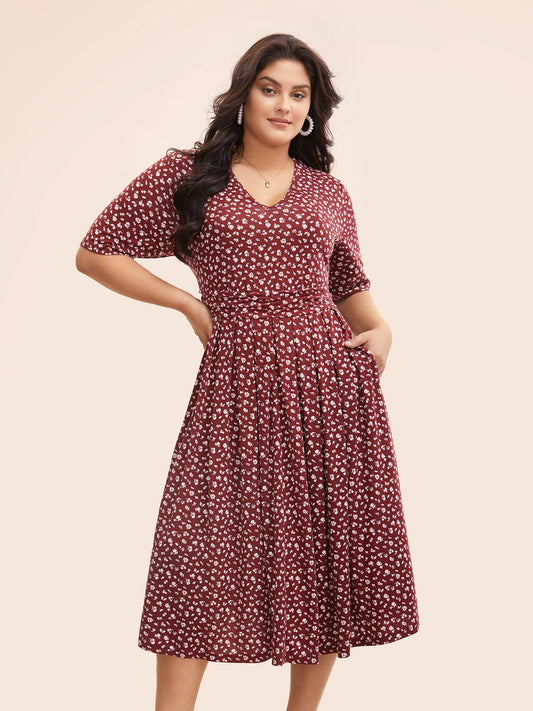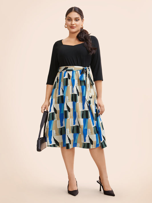 Geometric Patchwork Asymmetrical Hem Midi Dress