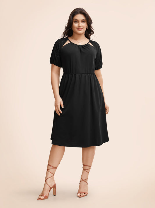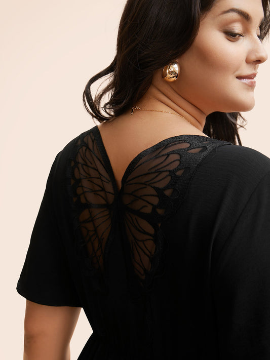 Butterfly Mesh Round Neck Ruffle Sleeve Dress