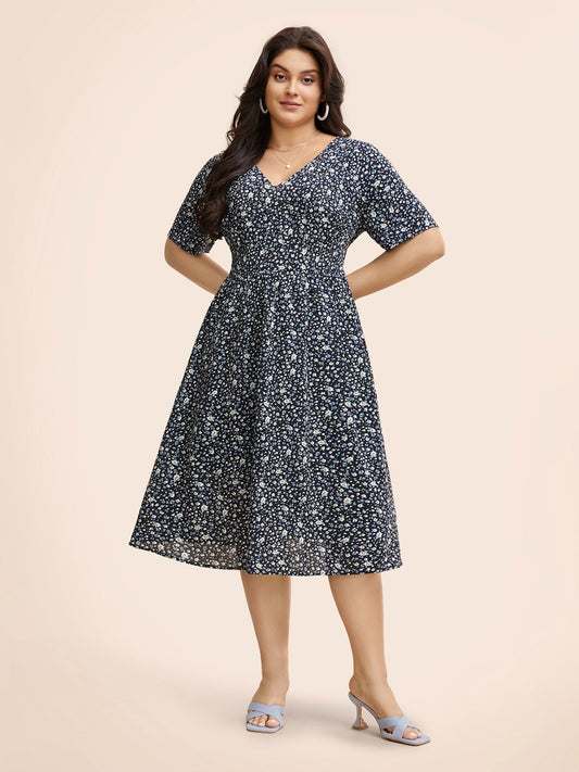 Silhouette Floral Print Cap Sleeve Midi Dress