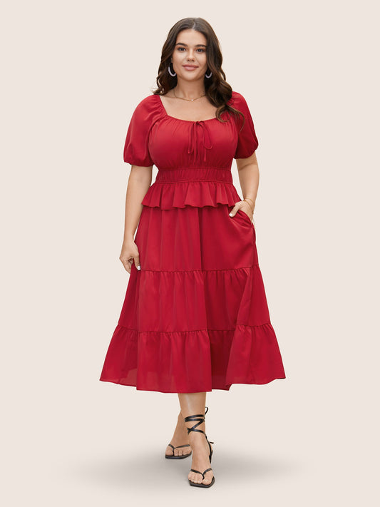 Heart Neckline Bowknot Ruffle Trim Midi Dress