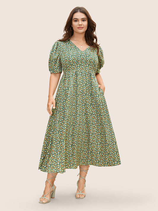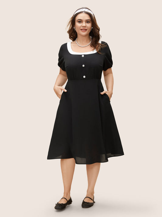 Bandana Keyhole Ruffle Sleeve Midi Dress