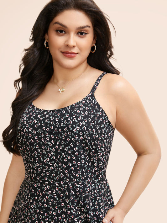 Allover Print Wrap Flutter Sleeve Midi Dress