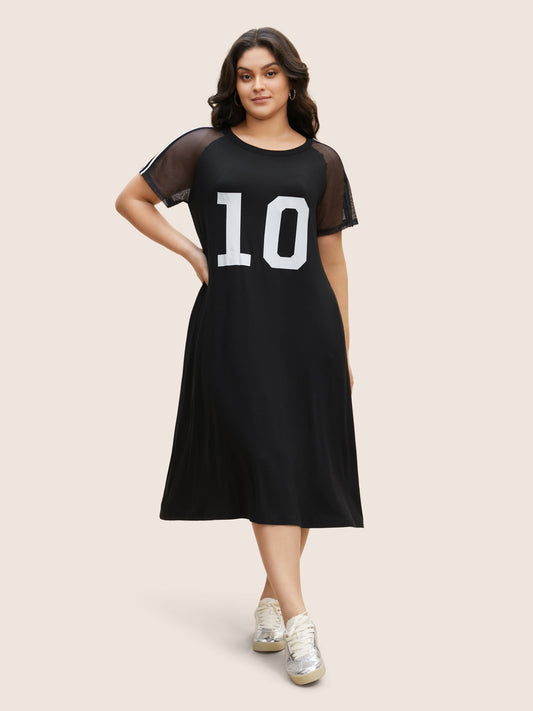 Round Neck Laser Cut Plicated Detail Midi Dress