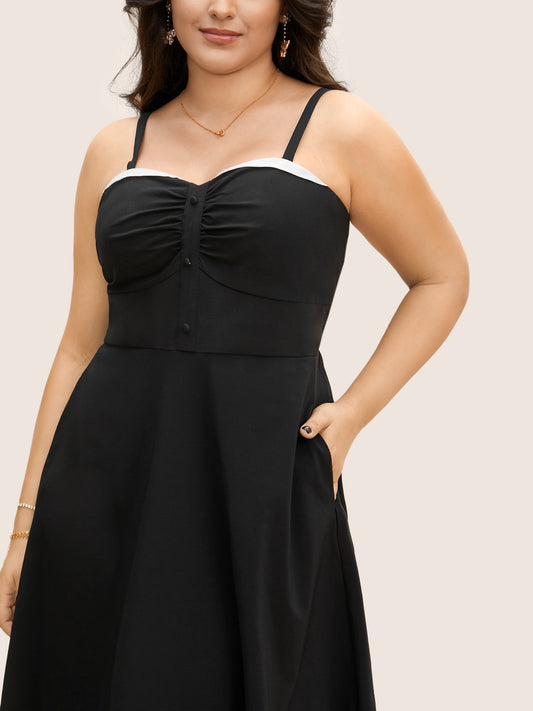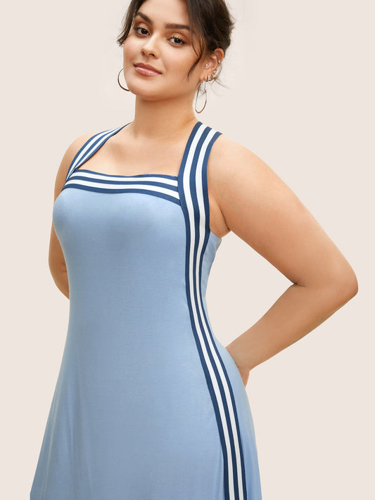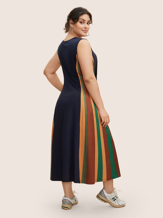 Shirt Collar Contrast Striped Sleeveless Midi Dress