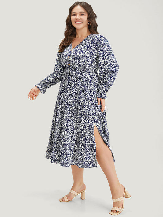 Ditsy Floral Pocket Button Detail Split Hem Dress