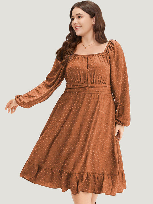 Polka Dot Square Neck Lantern Sleeve Shirred Dress