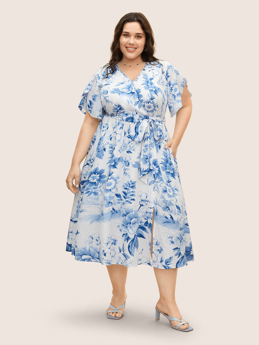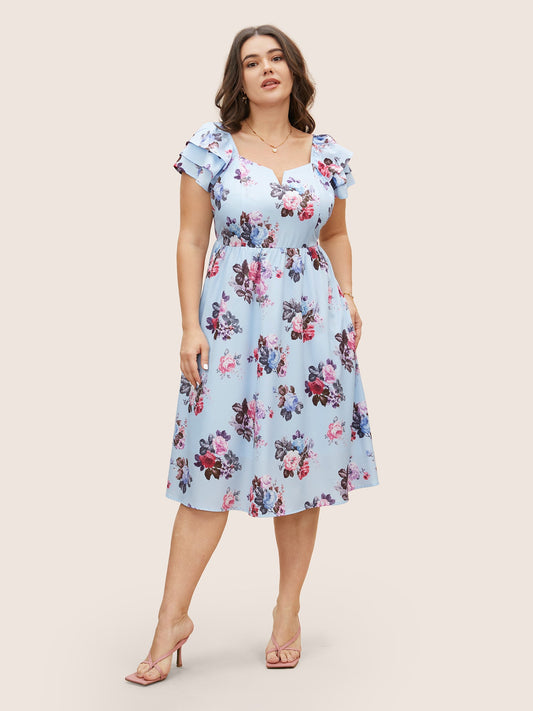 Bandana Print Tie Knot Ruffle Cap Sleeve Dress