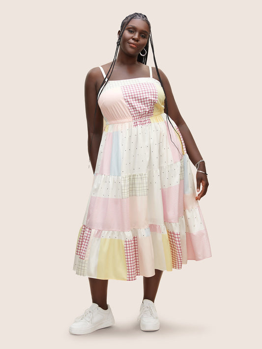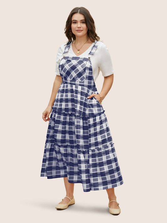 Plain Ruffle Layered Hem Adjustable Straps Dress