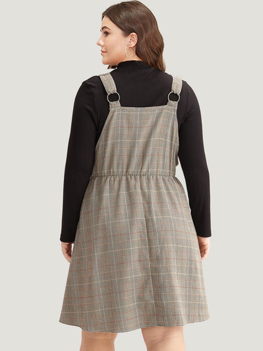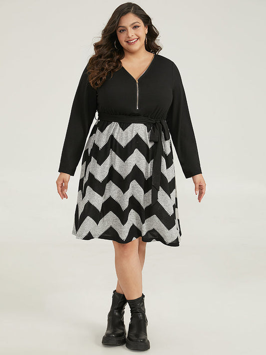 Striped Pocket Elastic Waist Patchwork Zipper Dress
