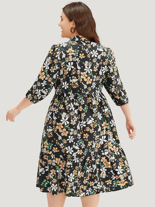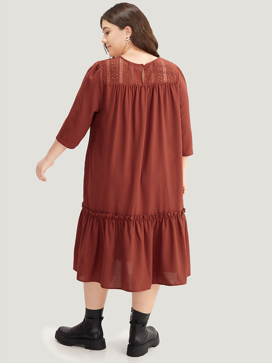 Guipure Lace Frill Trim Cut Out Ruffle Hem Dress