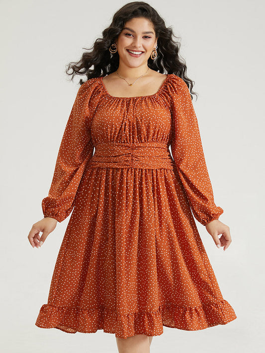 Plain Square Neck Laser Cut Lantern Sleeve Dress