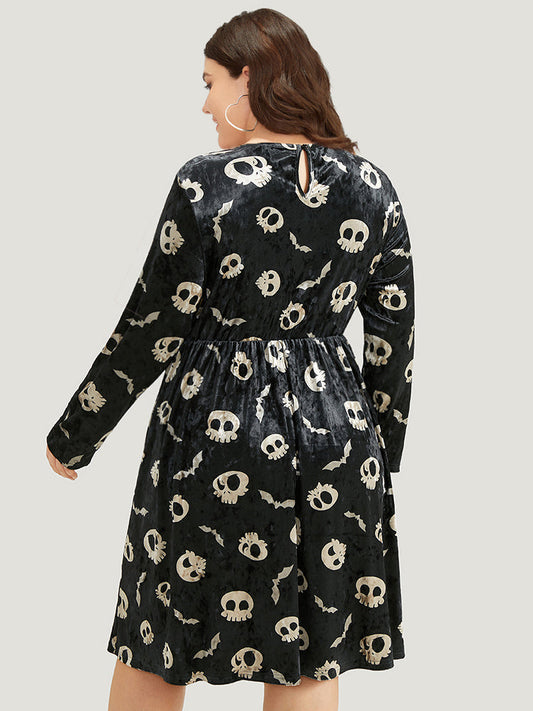 Halloween Moon & Star Cold Shoulder Pocket Elastic Waist Dress
