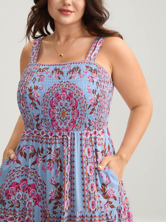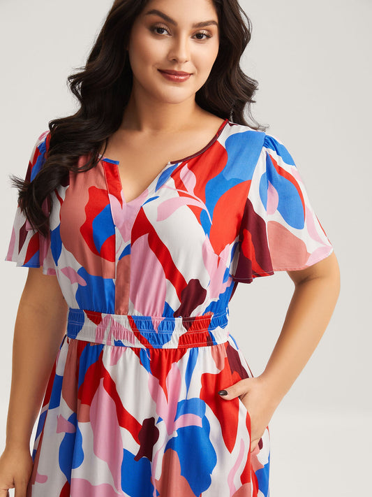 Ditsy Floral Print Stretchy Waist Midi Dress