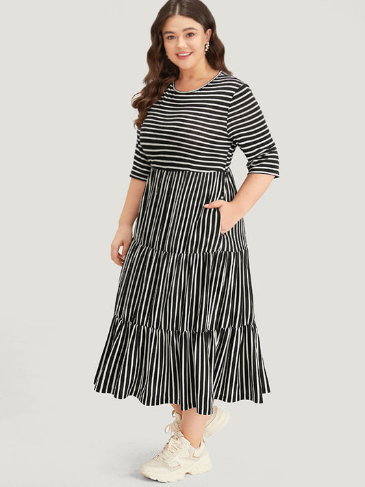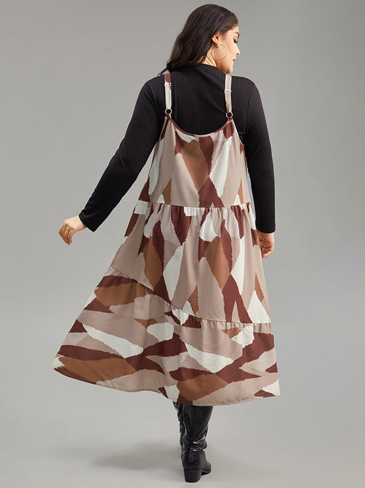 Colorblock Contrast Pocket Cami Ruffle Hem Dress
