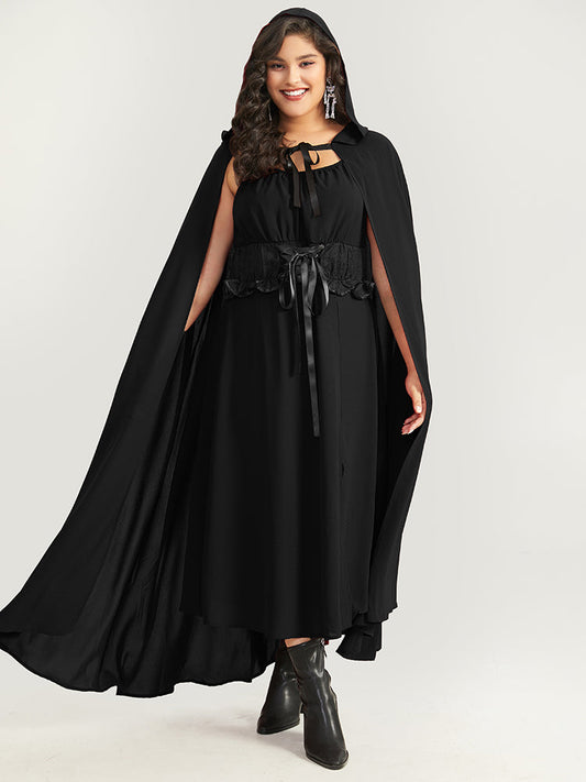 Halloween Solid Lace Up Split Hem Dress With Cape
