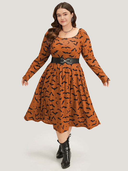 Polka Dot Geometric Belted Lantern Sleeve Dress