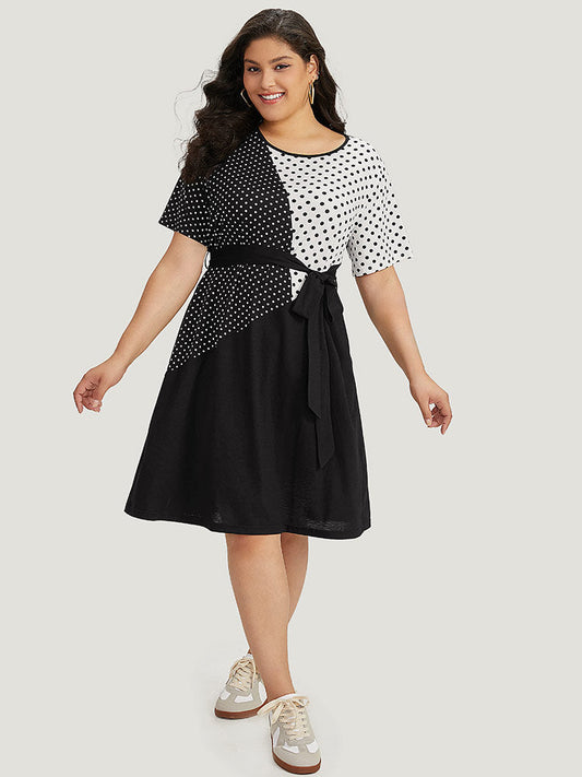 Supersoft Essentials Polka Dot Pocket Patchwork Belted Dress