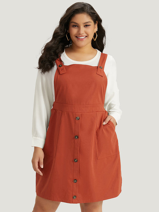 Plain Button Up Pocket Suspender Skirt