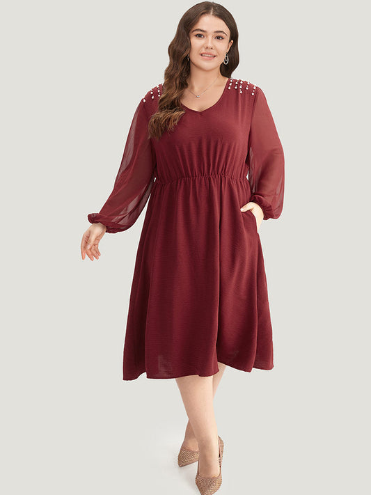 Pearl Beaded Pocket Mesh Patchwork Dress