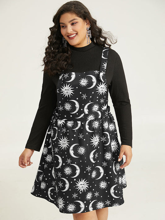 Halloween Moon & Star Print Pocket Spaghetti Strap Dress