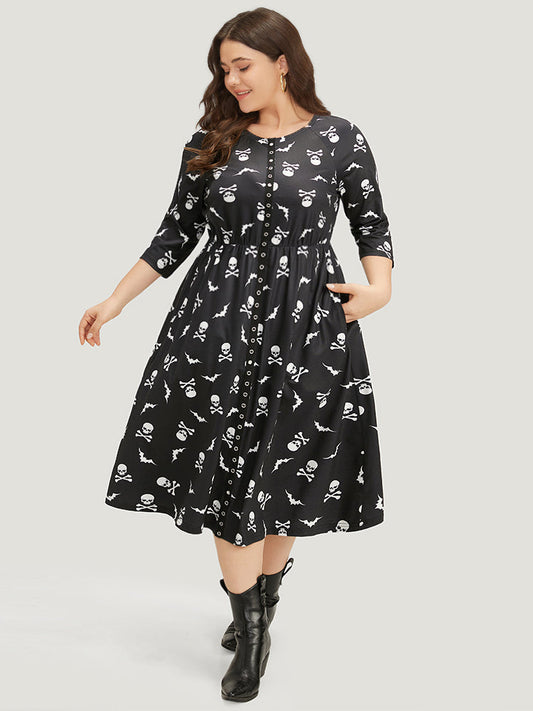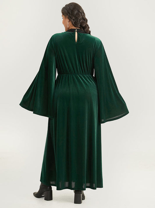 Halloween Velvet Patchwork Bell Sleeve Metal Detail Dress
