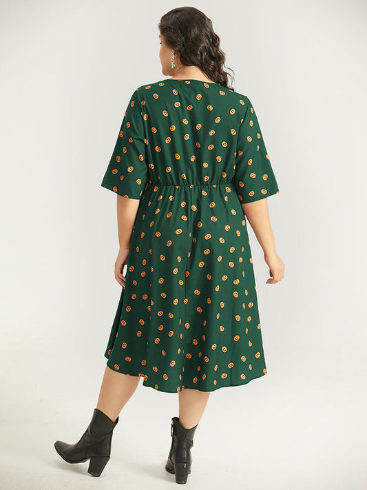 Halloween Pumpkin Print Pocket Elastic Waist Dress