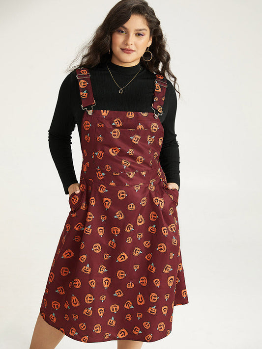 Halloween Pocket Pumpkin Print Overall Cami Dress