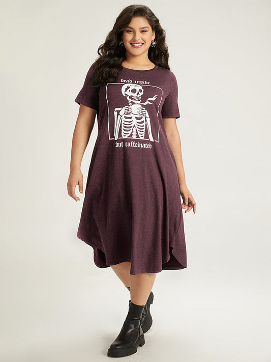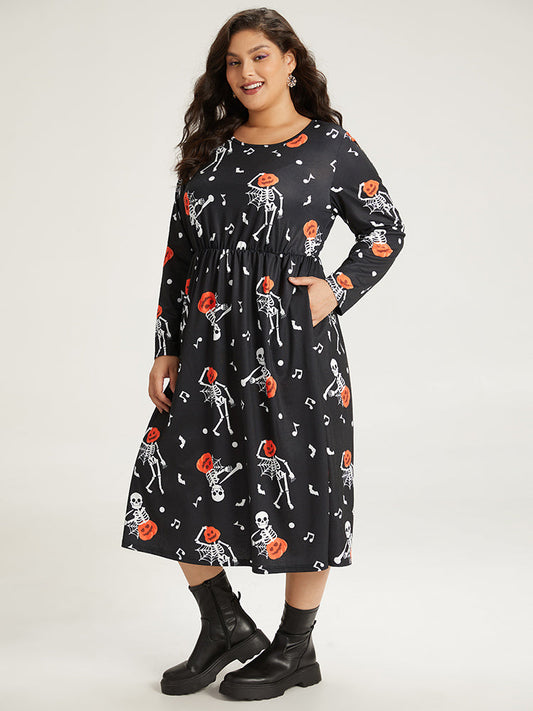 Halloween Print Pocket Crew Neck Elastic Waist Dress