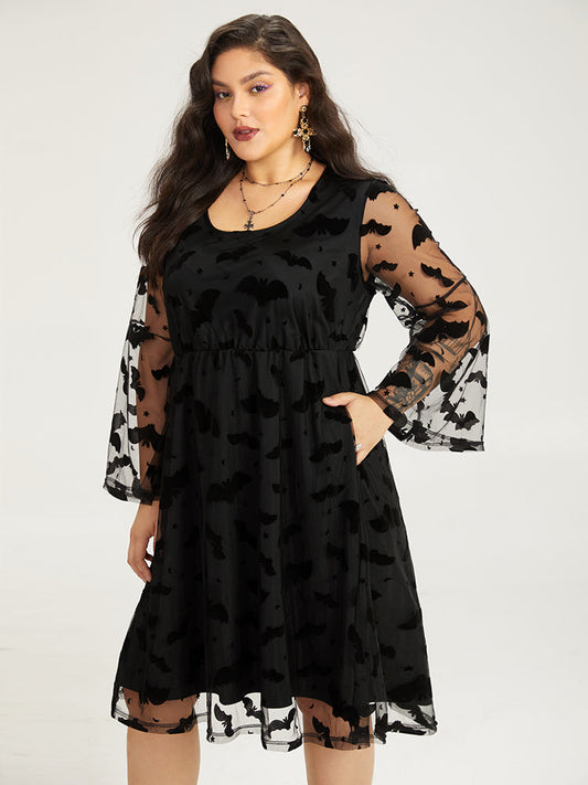 Halloween Crochet Lace Round Neck Bell Sleeve Dress