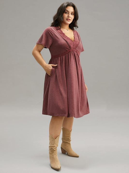 Plain Guipure Lace Pocket Petal Sleeve Dress
