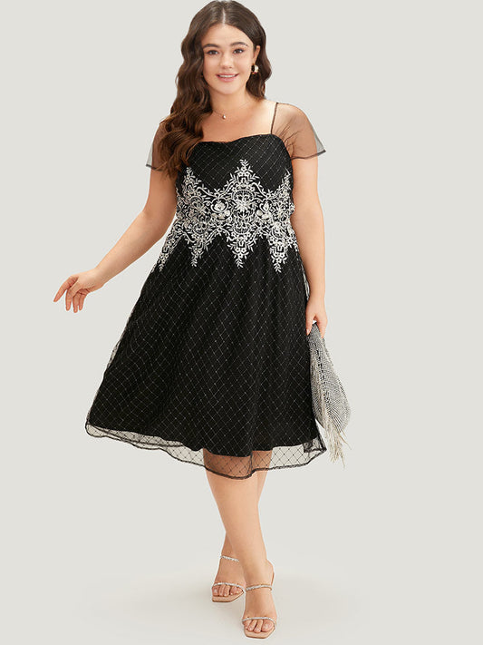 Embroidered Pocket Mesh Patchwork Tank Dress