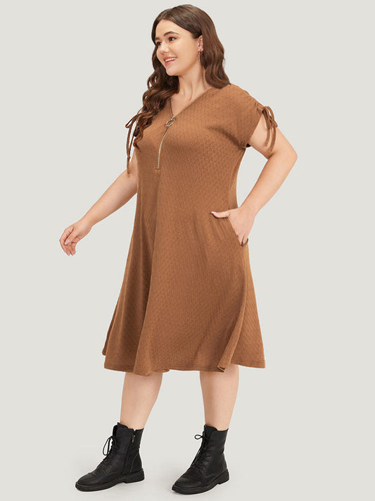 Solid O Ring Zipper Pocket Drawstring Dolman Sleeve Dress