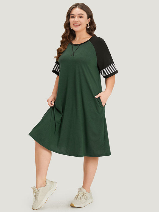 Supersoft Essentials Plain Pocket Striped Patchwork Round Neck Raglan Sleeve Dress