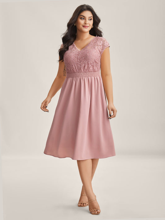 Lace Cut-Out Stretchy Waist Midi Dress