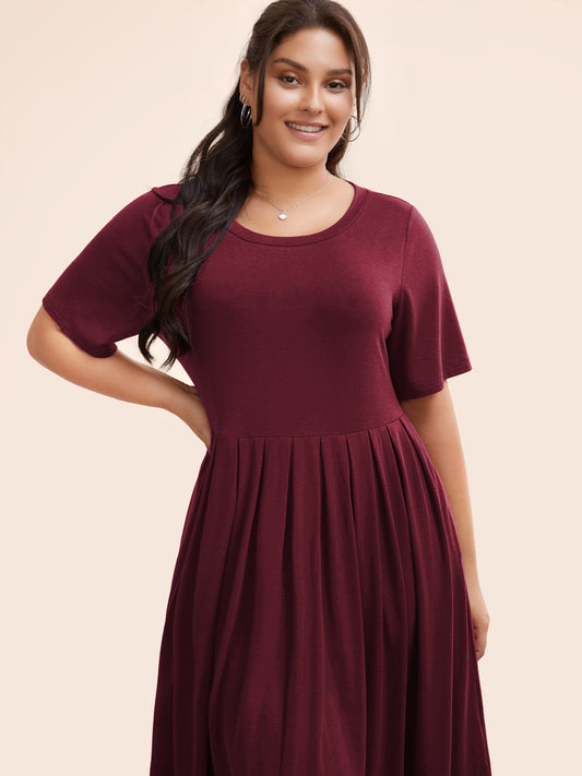 Supersoft Essentials Solid Pleated Round Neck Midi Dress