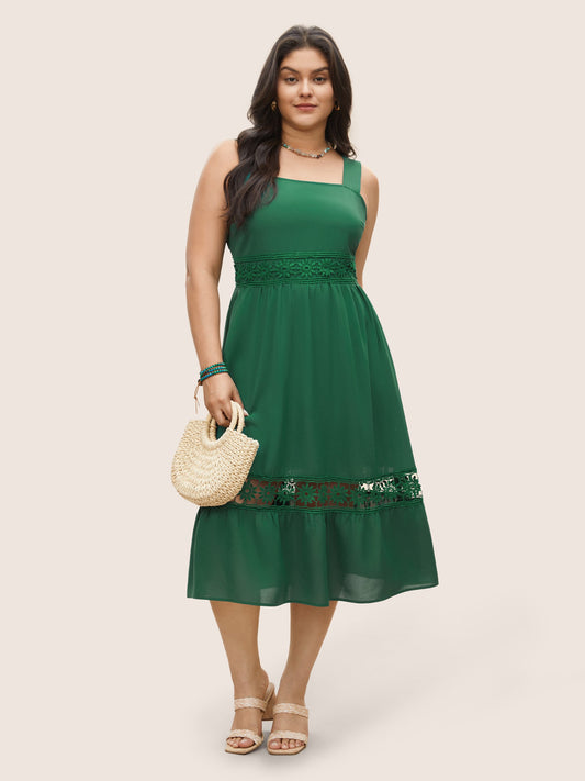 Plain Elastic Waist Cut Out Lace Patchwork Dress
