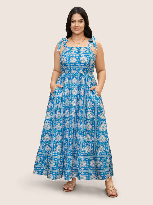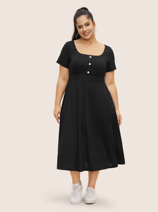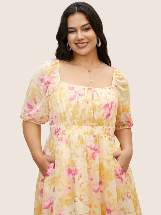 Square Neck Shirred Tiered Ruffle Sleeve Dress